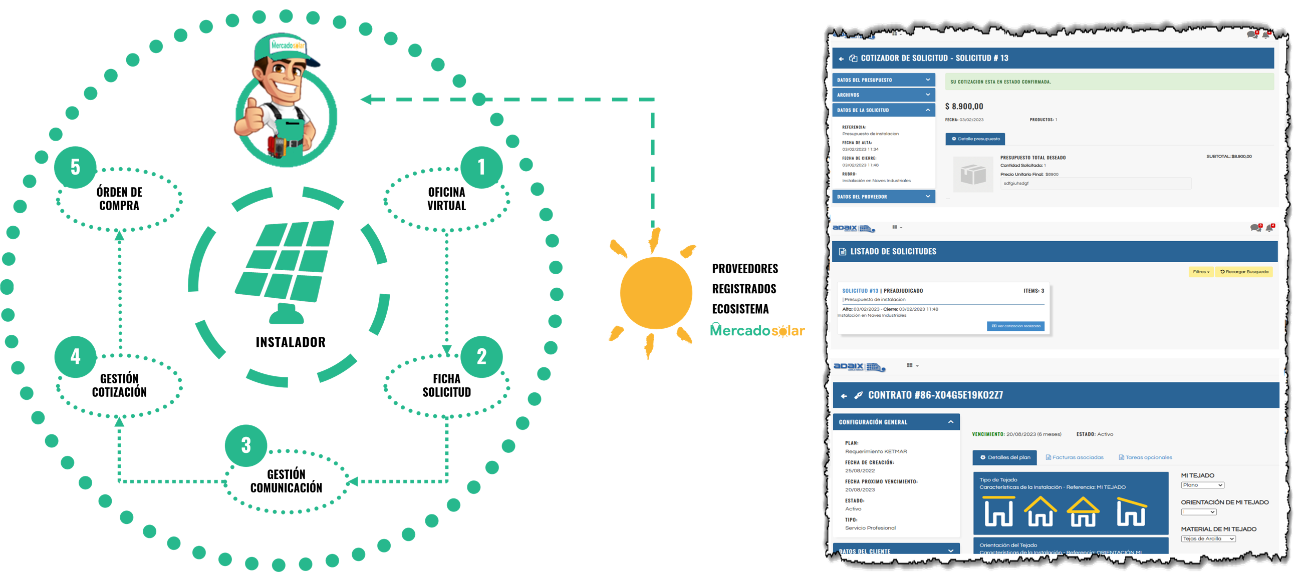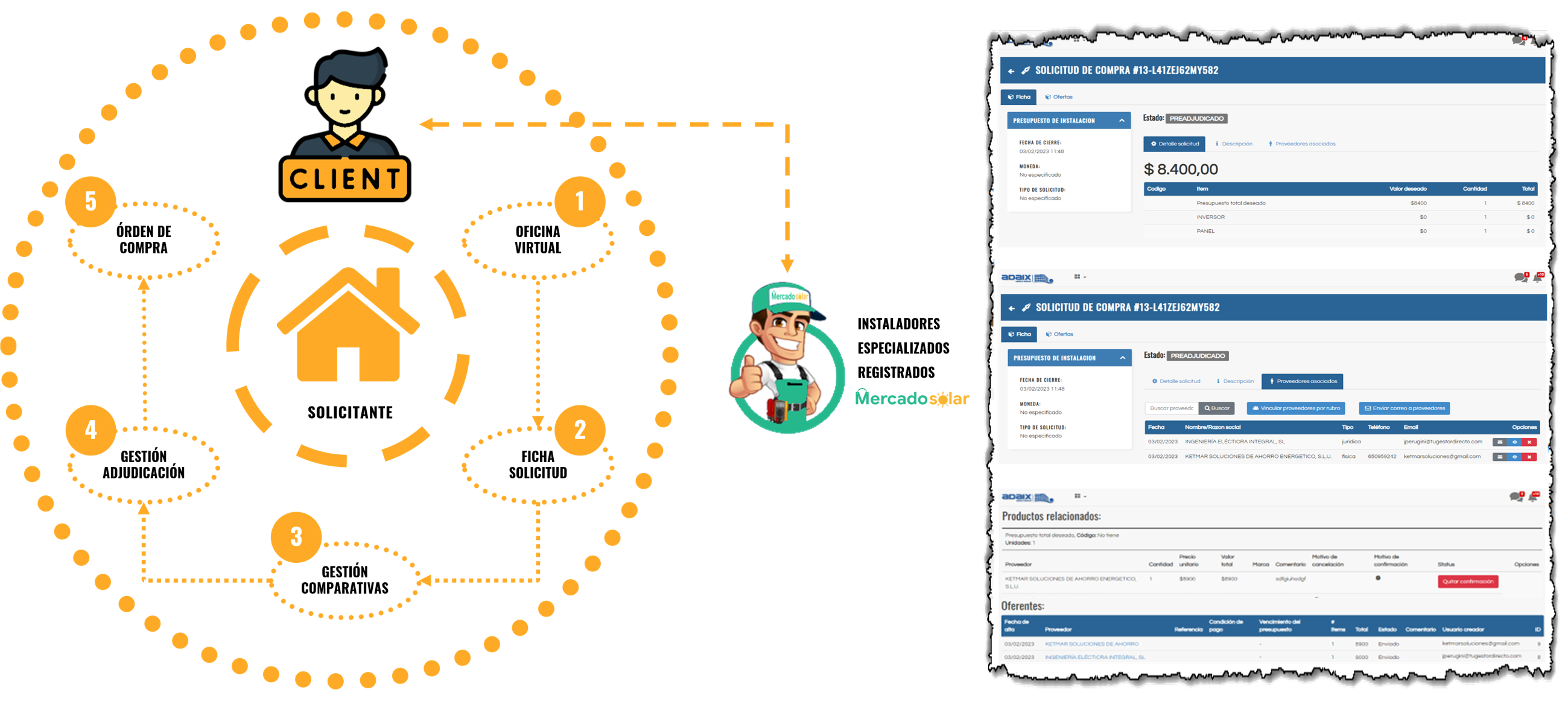 En este contexto, hemos desarrollado un nuevo servicio, orientado a la Gestión de Bid&Asks. Se trata de un modelo extremo-extremo que permitirá a aquellos clientes requirentes de servicios de Instalación Fotovoltaica, poder publicar su necesidad e invitar a Instaladores asociados a MercadoSolar a competir en una compulsa transparente, organizada y completamente digitalizada.