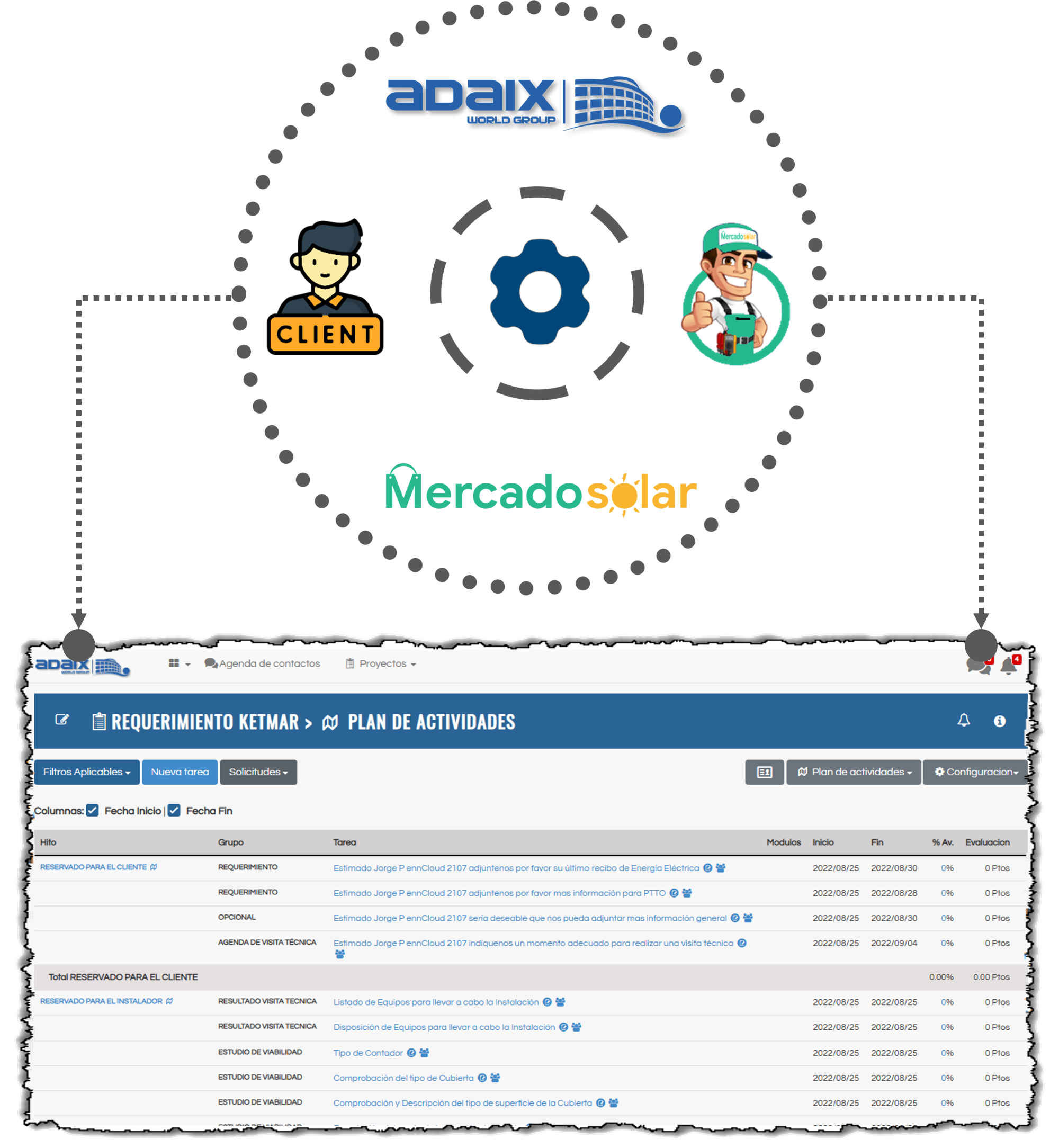 MercadoSolar pone a disposición de ADAIX y garantiza, la provisión de todos los elementos logísticos, técnicos y tecnológicos para llevar a cabo el Proyecto NODO ORIGINADOR, soportado en las Soluciones tecnológicas MercadoSolar de última generación.